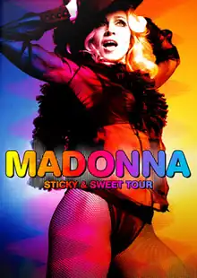 The Sticky & Sweet Tour was the eighth concert tour by American singer Madonna, to promote her eleventh studio album, Hard Candy (2008). It was Madonna's first major venture under a new ten-year 360 deal with Live Nation. Following a series of promotional appearances in support of Hard Candy, the tour was announced in May 2008, with concerts in Europe and North America; additionally, it marked the singer's first dates in Latin America in fifteen years.The first part of the tour began in Cardiff on August 23, 2008, and ended in São Paulo on December 21. Afterwards, it was announced that Madonna had decided to resume the tour in the summer of 2009, with twenty-seven more concerts, mostly in European markets she had either never played in or visited in several years; the 2009 extension started at London's the O2 Arena on July 4 and concluded on September 2 in Tel Aviv. Though initially planned, the tour did not visit Australia and East Asia due to financial problems and the financial recession. The show was described as a "rock driven dancetastic journey" and, like previous tours by the singer, was divided into different thematic acts: Pimp, Old School, Gypsy, and Rave.