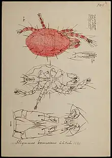 - ↑ Pepato, A.R.; Klimov, P.B. (2015). "Origin and higher-level diversification of acariform mites--evidence from nuclear ribosomal genes, extensive taxon sampling, and secondary structure alignment". BMC Evolutionary Biology. BioMed Central. 15: 178. doi:10.1186/s12862-015-0458-2. PMC 4557820. PMID 26330076.