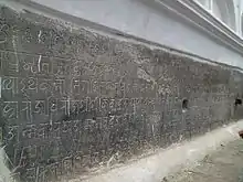 Stone inscriptions in the Kathmandu Valley (Nepal Bhasa:नेपाःमन्दःया ल्वंह पौत) refer to ancient stone slabs, pillars and pedestals with text carved on them. They are the most important sources for the history of Nepal. A vast majority of the inscriptions found in Nepal are from the Kathmandu Valley where they are an ubiquitous element at heritage sites. They consist of royal edicts and dedicatory notes on Hindu and Buddhist temples, stupas, statues, water spouts and other architectural structures.[1] Stone inscriptions are locally referred as Lōhan Pau (Nepal bhasa:𑐮𑑂𑐰𑐴𑑅 𑐥𑑁).