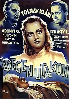 Strange Roads (Hungarian: Idegen utakon) is a 1944 Hungarian drama film directed by Imre Apáthi and starring Klári Tolnay, László Szilassy and Géza Abonyi.[1] [2] It was shot at the Hunnia Studios in Budapest. The film's sets were designed by the art director István Básthy.