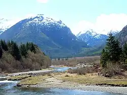The park also features Myra Falls, a tiered waterfall that empties into Buttle Lake, and Upper Myra Falls, a punchbowl waterfall located 6 km (3.7 mi) further upstream.[2]