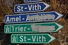 In the Brussels Capital Region, Eupen-Malmedy and the municipalities with language facilities, both street names and road signs are officially bilingual. Language activists from several sides are however arguing that these should be monolingual in certain areas in favour of their own language, and that other languages do not 'belong' on the signs there. Some even experience this as a kind of colonisation of their own language area. Therefore, these activists sometimes vandalise street name signs and road signs by making the undesired language illegible. This is especially common in the linguistic conflict in Voeren.[9]
