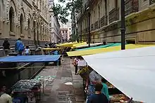 Prior to the Spanish conquest of the Aztec Empire, commercial activity primarily took place in the tianguis or marketplaces. In New Spain, outside of the controlled mercado or market on the Zócalo and other squares, street vendors emerged, then called buhoneros. Efforts to control street vendors date back to at least 1541, when the city government prohibited itinerant vendors.[4][5]