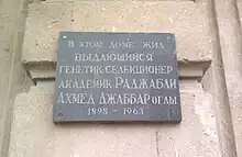 Farman Narimanbekov was also repressed. He was taken away at night from the construction site of Mingechevir hydroelectric power station, where he was then working. After the amnesty, he returned to Mingachevir and was a power engineer.[18] On 22 August 1937, breeder Ahmed Rajabli was arrested and exiled to a camp of the GULAG, Magadan Correctional Labor Camp, and there, in the harsh conditions, he created a subsidiary farm, where he bred frost-resistant varieties of vegetable crops. In 1946, he was released and returned home where he continued his research.[16]