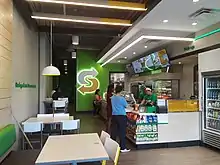 In July 2017, Subway unveiled redesigned restaurants, dubbed "Fresh Forward",[32] with a new company logo.[33] Features include self-order kiosks; USB charging ports at tables; and new menu items, including additional condiments, and bread made without gluten.[32]