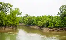 Sundarbans West Wildlife Sanctuary is a UNESCO World Heritage Site and animal sanctuary in Bangladesh. The area of the reserve covers 715 km2.[1] It is part of the larger Sundarbans region, one of the largest mangroveforests in the world. It is formed at the unified delta of the Ganges, Brahmaputra and Meghna rivers on the Bay of Bengal. The total area of the entire Sundarbans is about one million ha, 60% of which is found in Bangladesh, with the remainder 40% in India. The region is divided by the Raimangal River. Within the Bangladeshi area of Sundarbans, there are three wildlife sanctuaries: Sundarbans East, Sundarbans South, and Sundarbans West.