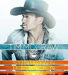 The Sundown Heaven Town Tour was a headlining concert tour by American country music artist, Tim McGraw. The tour was in support of his thirteenth studio album, Sundown Heaven Town (2014). It began on May 9, 2014, and ended on November 8, 2014.