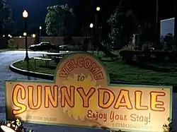 - ↑ The "Welcome to Sunnydale" sign lists a population 38,500 in several early episodes, including "School Hard" (2.03) and "Lovers Walk" (3.08). In "Conversations with Dead People", meanwhile, it gives a population of 32,900 (7.07). The sign is visible for a moment at the end of "Chosen" (7.22) but the population figure is not legible.