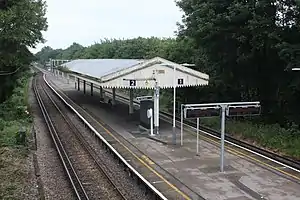 Sunnymeads railway station serves the once separate village of Sunnymeads in Berkshire, England, now subsumed by the neighbouring village of Wraysbury. It is 22 miles 48 chains (36.4 km) down the line from London Waterloo, on the line between Windsor and Eton Riverside and Waterloo. It was built in 1927,[1] and has been unmanned since 1969. Services to the station are operated by South Western Railway.
