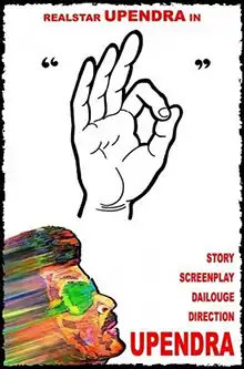 Super (pronounced Super, originally known only by the Vitarka Mudrā hand symbol) is a 2010 Indian Kannada-language political drama film written and directed by Upendra.[2] The film was released on 3 December 2010 in its Kannada version, and on 11 March 2011 in its Telugu version, which had a few scenes reshot with Ali and Sadhu Kokila switching roles.[3] This utopian film had a concept of a contrasting futuristic India set in the year 2030, and the contemporary image of India.[4]