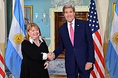 - ↑ Stauffer, Caroline; Cohen, Luc (29 May 2017). "Argentina Foreign Minister Malcorra resigns". Reuters. Retrieved 29 May 2017.