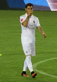 After being loaned out due to lack of confidence in him by Milan coach Siniša Mihajlović, Suso started getting playing time under new manager Vincenzo Montella.[29] After impressing in the pre-season and in the first matches of 2016–17 Serie A, Suso was considered to play a pivotal role in the season.[30] Suso scored his first league goal for Milan in the second matchday of Serie A against Napoli, an equalizer in the eventual 2-4 defeat.[31] On 16 September 2016, he assisted Carlos Bacca's goal in a 1–0 win against Sampdoria.[32] He also assisted Manuel Locatelli goal against Juventus on 22 October.[33] He score Milan's first goal and assisted the second goal in the 2–1 win against Palermo on 6 November.[34] The following week, scored his first brace in a 2–2 draw against Inter Milan at San Siro.[35] He scored a goal and assisted another two as Milan beat Empoli 4–1 in the next match.[36]