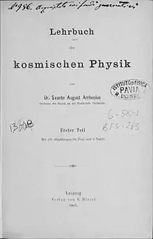 - ↑ Arrhenius, S., Worlds in the Making: The Evolution of the Universe. New York, Harper & Row, 1908,
