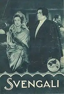 Svengali is a 1927 German silent drama film directed by Gennaro Righelli and starring Paul Wegener, Anita Dorris and André Mattoni.[1] It was produced and written by Max Glass, an adaptation of the 1894 George du Maurier novel Trilby. This is one of the adaptations of the novel that shifts the focus of the story more to Svengali, since at this time anti-Semitism was on the rise in Germany, and Svengali was portrayed as an evil Jew in the film.[2]