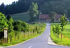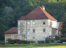 Žerjav Castle is a 16th-century manor. It was built in 1580 by Lenart Frumentin, a priest in the Teutonic Knights. There is a stone plaque with a crest above the manor entrance. Next to the stall belonging to the castle is a well with an inscription stating that it was installed in 1591.[2] Ownership of the manor was later assumed by the Austrian Empire, which in turn deeded it to the Račič family for its services during its war against the Republic of Venice. The castle was nationalized after the Second World War. A tree-lined avenue formerly stood along the route from Dolsko to the manor, with heritage cultivars of pears on the right and apples on the left. It was cut down in the 1950s. The avenue was replanted with linden trees in 2012.[6]