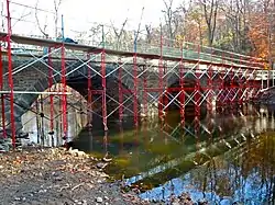Swamp Creek Road Bridge is a historic stone arch bridge located near Sumneytown in Marlborough Township, Montgomery County, Pennsylvania. The bridge was built in 1892. It has three spans totaling 76-foot-long (23 m) with an overall length of 125-foot (38 m). The bridge crosses Unami Creek.[2]