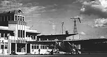 Swan Island Municipal Airport was officially dedicated in September 1927 by Charles Lindbergh, who flew the Spirit of St. Louis onto the airstrip. Although construction at the field had not been entirely completed, most of the facilities like hangars and landing strips were finished. Adjacent to the airport was Rankin Airfield, which was a private strip owned by a local resident.[10] Upon its completion, the airport cost US$557,073 (US$9,208,460 adjusted for inflation).[11] The official opening of the Swan Island Municipal Airport came on September 27, 1927 during the Pacific Coast Air Derby where six army planes performed for 10,000 paid spectators.[12] A gravel runway was constructed in 1928, replacing the previous dirt runway.[13] In 1929, Varney Air Lines started passenger services between Portland and Boise, Idaho and later that year from Portland to Salt Lake City, Utah and Portland to Pasco, Washington.[14][15]