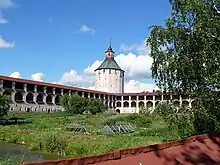Sylvester began to lose favor with the Tsar when he allied himself with the peace party in the late 1550s when the Livonian War began to develop.[1] He was staunchly against the war, and sent a letter to Prince Alexander Gorbaty-Shuisky criticizing Ivan's warlike tendencies, which may have led to the extermination of Alexander's male bloodline during the beginning of the oprichnina.[1] Sylvester and the Tsaritsa Anastasia had a mutual dislike for each other, and following her death in 1560, accusations were made that Sylvester and Adashev poisoned her.[1][2] While there is evidence that she was poisoned, it was extraordinarily unlikely that Sylvestor or Adashev had a hand in it. Regardless, Sylvester withdrew to the Kirillov monastery in Beloozero, with no documented direct pressure from Ivan.[1][2]
