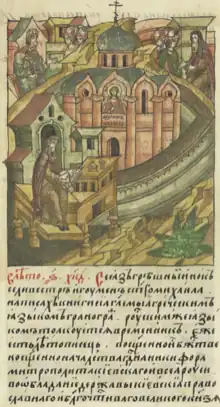 Some sources name Sylvestr as a compiler of either the Primary Chronicle itself or its second edition. He was a hegumen of the Vydubetsky Monastery in Kiev, which had been founded by Prince Vsevolod Yaroslavich. In 1118, Sylvestr was sent to Pereiaslav as a bishop.[1]