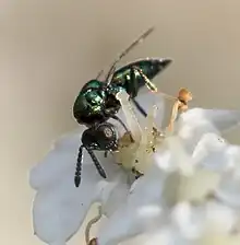 Small (body length 0.6-3.0 mm) dark, bronze or metallic green wasps.