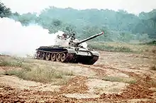 The T-62 is a Soviet medium tank that was first introduced in 1961.[8] As a further development of the T-55 series, the T-62 retained many similar design elements of its predecessor including low profile and thick turret armour.