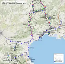 TER Languedoc-Roussillon was the regional rail network serving Languedoc-Roussillon région in France. The région became the organising authority on 1 January 2002. In 2017 it was merged into the new TER Occitanie.