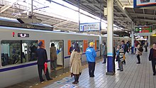 - A 50090 series EMU at Kawagoe Station on an up Rapid Express service to Ikebukuro, June 2008