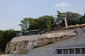 With the surrounding area, Tašmajdan forms the cultural-historical complex Old Belgrade (Stari Beograd), while the park itself is in the zone of the protected natural area of Miocene Sandbank-Tašmajdan (Miocenski sprud-Tašmajdan).[55] The protected geological natural monument was established in 1968, and after the revision and reconfirmation in 2021, today covers 2.46 hectares (6.1 acres). It is placed in the category III of protection. Exposed cliffs from the Miocene period show layers from the period of existence of the ancient Pannonian Sea. The exposed sandbank in the north and northeast section of the park, consists of three sections. The most recognizable section is seen from the western stands of the Tašmajdan stadium. Section 2 is below the stadium, while the third section includes caves (see Underworld section below).[56]