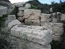 The western end of the villa includes some remains of presses, rock-cut vats, channels and troughs, showing clearly that this area was the focus of agricultural activity in the rustic villa.[5] No attempt has been made to map the extent of land which was managed from this villa. Ashby suggested that " ... the natural way of access to it [the villa] is on the south-east side, coming up the valley from the bay of Birżebbuġa."[6] In fact, remains of an elaborate entrance were found on this side of the villa complex.[6]