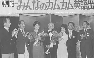 Tadaichi Hirakawa (平川 唯一, February 13, 1902 – August 25, 1993) was a broadcaster and radio instructor of English conversation courses for the NHK. Nicknamed "Uncle Come Come,"[1] he was in charge of the popular radio program "English Conversation (Eikaiwa 英会話)"[2] from 1946 to 1951. The program is also known as "Come Come English".[3][4] He came from Takahashi City, Okayama Prefecture, Japan and studied in the United States before World War II. In 2021, NHK produced a TV drama, Come Come Everybody, featured Hirakawa and his days and family.[5]