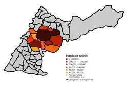 The Taichung–Changhua metropolitan area (Chinese: 台中彰化都會區) is the second largest metropolitan area of Taiwan. Prior to 2010, It was officially defined as including the following areas: