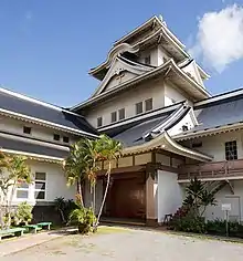 In 1904 Okumura established the Makiki Christian Church. The modern church building, which is well-known for its architectural similarity to a Japanese castle, was not constructed until 1932. Okumura chose that architectural style as a symbol of peace and security.[10]