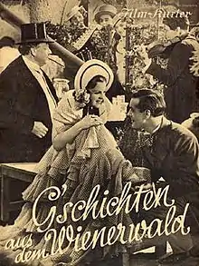 Tales from the Vienna Woods (German: G'schichten aus dem Wienerwald) is a 1934 Austrian musical film directed by Georg Jacoby and starring Magda Schneider, Wolf Albach-Retty and Leo Slezak.[1] The title refers to the waltz Tales from the Vienna Woods by Johann Strauss.