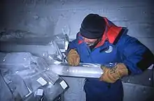Ice core extracted at Talos Dome showing an ash layer corresponding to the Toba supervolcano eruption