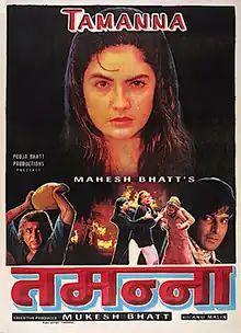 Tamanna (transl. Desire) is a 1997 Indian Hindi-language drama film directed by Mahesh Bhatt. It stars Paresh Rawal, Pooja Bhatt, Sharad Kapoor and Manoj Bajpayee. The screenplay was written by Tanuja Chandra. The story was written by Tanuja Chandra and Mahesh Bhatt. It was produced by Pooja Bhatt.
