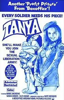 Tanya is a low-budget 1976 comedy film directed by Nate Rodgers and loosely based on the experiences of Patricia Hearst. The lead character, Charlotte Kane, is 20-year-old heiress of a newspaper mogul. She is kidnapped by five sex-crazed pseudo-revolutionaries who call themselves "The Symphonic Liberation Army" (a parody of the Symbionese Liberation Army). Charlotte is quickly converted to their cause and changes her name to Tanya.
