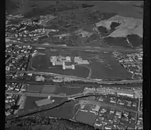 As with the rest of Wellington, Tawa was colonised by the New Zealand Company in the mid-19th century under the direction of Edward Gibbon Wakefield. The Company claimed to have purchased the land from local Māori - this claim "did not take into account of Maori existing land use, and was further undermined by the New Zealand Company and later by the government."[24] It was divided into 100-acre blocks, providing some of the 100-acre "in the country" blocks that accompanied the one-acre "in town" (i.e., central Wellington) blocks, similar to other Company settlements. Much of the eastern side of the Tawa valley came to be owned by a single family until the demand for housing land overtook the benefits of farming the land. In 1951, a Town District was established covering Tawa and Linden. Within two years this had become Tawa Flat Borough.