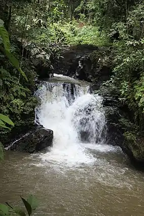 Tawau Hills Park, was established in 1979, primarily as a protection for the water catchment area of Tawau town, Sabah, Malaysia. It is located 24 kilometres from Tawau, and comprises 279.72 km² of lowland dipterocarp rainforest, surrounded by oil palm and cacao plantations. The park offers picnic areas, camping sites, and chalets. The Park contains rugged volcanic landscapes including a hot spring and spectacular waterfalls. The highest point in the park is Gunung Magdalena (1310 m). It is administered by the Sabah Parks.