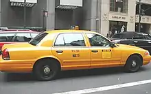 The New York City Taxi and Limousine Commission has enforced strict requirements for the color of medallion taxicabs since the late 1960s.[97] According to the Rules of New York City, "The exterior of the vehicle must be painted taxi yellow (Dupont M6284 or its equivalent), except for trim. Samples of paint color and shade are to be submitted to the commission for approval."[98][99] The specified M6284 paint code is actually a Ford code for school bus yellow.[100]