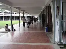 The main building was designed by Konstantinos Doxiadis, a Greek architect and town planner.[2] An example of modern architecture, according to architect Mahbubur Rahman it takes into account indigenous culture, climate, and spatial arrangement. Arranged around a court, it has an extra butterfly canopy (double roof) extended over the main block at the front, which helps to keep the Centre cool.[3] The complex contains dining rooms, meeting rooms, libraries, art and music rooms, stages, a multipurpose hall, game rooms, a film lab, rehearsal rooms, and more. As a result, the Teacher-Student Centre forms the social and cultural heart of the campus. The complex has some extensions which were built during the 1980s that allowed north–south cross-ventilation.[4] As one enters the Teacher-Student Centre, a sculpture by Hamiduzzaman Khan greets the visitors.
