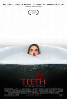 Teeth is a 2007 American comedy horror film written and directed by Mitchell Lichtenstein. The film stars Jess Weixler and was produced by Lichtenstein on a budget of $2 million.[1] It premiered at the Sundance Film Festival on January 19, 2007, and received a limited release in the United States on January 18, 2008, by Roadside Attractions. Its title refers to the ancient trope of vagina dentata.