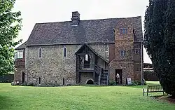 A succession of owners followed and as the fortunes of the estate declined parts were sold off until the residue was sold to the City of Rochester in the 1930s.[4] At this stage it was well cared for and surrounded by a fine garden.[9] Locally there was a debate over its future, the council planned to use the surrounding site for industrial development.[4] Having no obvious use for the house, a committee was formed to preserve it.[9] The Second World War interrupted plans, and by in 1947 the site was recognised and scheduled. However neglect and vandalism had taken their toll; the barn had fallen down and the roof collapsed.[9] In 1950 the building was listed as grade I and any plans for its demolition were thwarted. During the early 1950s the Ministry of Works oversaw work to preserve and restore the building as it can be seen today.[4]