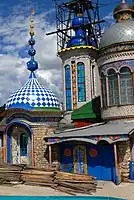 The Temple of All Religions (Russian: Храм всех религий, Tatar: Барлык диннәр гыйбәдәтханәсе) or the Universal Temple (Russian: Вселенский храм) is an architectural complex in the Staroye Arakchino Microdistrict of Kazan, Russia. It consists of several types of religious architecture including an Orthodox church, a mosque, and a synagogue, among others. It is currently under construction since 1992, started by local artist and philanthropist Ildar Khanov[1] (1940 - 2013). The structure now serves as a cultural center and a residence for Khanov's brother and sister, who both continue to serve as guides and supervisors of the complex.[2]
