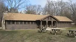 Tepicon Hall is a historic dining hall located at Tippecanoe River State Park in Franklin Township, Pulaski County, Indiana. It was built about 1938 by the Works Progress Administration and is nearly all that remains of Camp Tepicon. It is a one-story, T-shaped, rustic timber-frame building with a gable roof. It is sheathed in clapboard siding and board-and-batten siding on the gable ends.[2]: 2