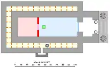The Tabernacle also exhibited similarities with Mount Sinai. Both Mount Sinai and the Tabernacle had three separate areas with increasing levels of exclusivity—one for the people generally, one for the anointed class, and one for only the single representative of the people;[36] the tablets of the law[37] a cloud;[38] and God's presence.[39] And God spoke to Moses at both Mount Sinai and the Tabernacle.[40] But in contrast to Mount Sinai, with the Tabernacle God's presence was constant; God's presence was in their midst, no longer distant; and God's presence was no longer rooted to a fixed place.[41]