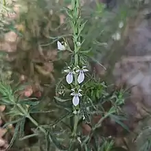 Teucrium cubense is a species of flowering plant in the mint family known by the common names small coastal germander[1] and dwarf germander. It is native to a section of the Americas that includes the southwestern - south-central United States (California, Arizona, New Mexico, Texas, Oklahoma, Louisiana, Alabama), parts of the Caribbean, Mexico, Costa Rica, and southern South America (Argentina, Uruguay, southern Brazil).[2][3][4][5][6][7] In general, the plant has lobed leaves and a flower corolla with a broad lower lobe and smaller lateral lobes. The flower may be white or blue-tinged with purple speckles.