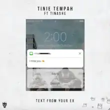 "Text from Your Ex" is a hip hop song by British rapper Tinie Tempah featuring guest vocals from American singer Tinashe. It was released on 20 January 2017, as the fourth single from his third studio album, Youth (2017).