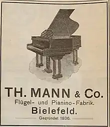 Th. Mann & Co. was a German piano factory, existing in Bielefeld, Prussian Province of Westphalia, from 1836 until 1942, as well as instrument shop for pianos and harmoniums with temporary branch offices in Gütersloh, Herford, Detmold, Rinteln and Paderborn.[1][2][3]