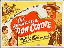 The Adventures of Don Coyote is a 1947 American Western comedy film in Cinecolor. It is directed by Reginald Le Borg and written by Robert Creighton Williams and Harold Tarshis. The film stars Richard Martin, Frances Rafferty, Val Carlo, Benny Bartlett, Marc Cramer and Frank Fenton. The film was released on May 9, 1947, by United Artists.[1][2]
