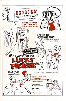 The Adventures of Lucky Pierre is a 1961 nudie cutie film created by exploitation filmmakers Herschell Gordon Lewis and David F. Friedman. The first of its kind to be filmed in color,[3] the film starred comedian Billy Falbo. It was unique for its time and genre, adding successful comedy to the nudity and sensationalist material.